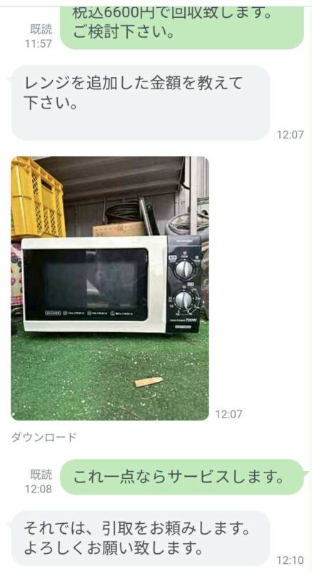 LINEでのスムーズなやり取りから当日回収へ